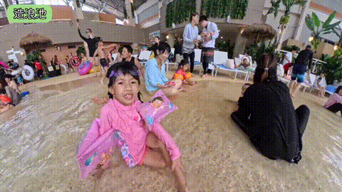 從早上 11 點一路玩到下午 2 點,孩子們完全不想離開!人造海浪池的浪蠻有力的,小朋友玩得超開心。