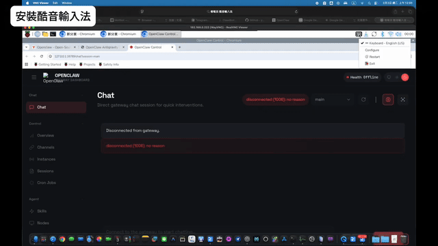 為了讓助理能用繁體中文流暢溝通,我們需要幫樹莓派安裝 fcitx5-chewing (酷音輸入法)。 直接在Web Chat裡面,輸入install fcitx5 fcitx5-chewing,助理就會幫你裝好了